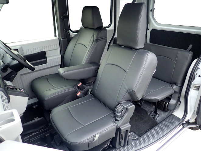 センター部分同様サイド・バック部分にも新開発BioPVCシートカバーを使用することにより、シートカバーの装着性をアップしました。また難燃性と耐久性にも優れ抗菌防臭加工など衛生面にも気配りをした素材です。