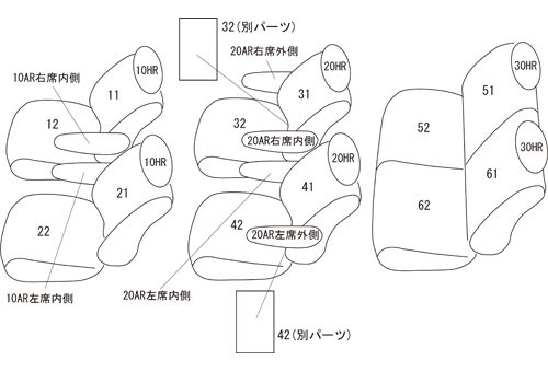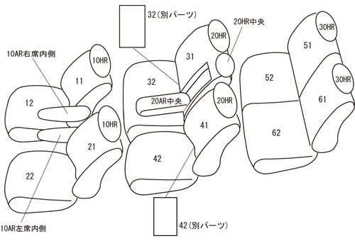 | 形 状 | 運転席手動シート 2列目中央ヘッドレスト有り ※ 品番検索で迷われた方は{コチラ} |