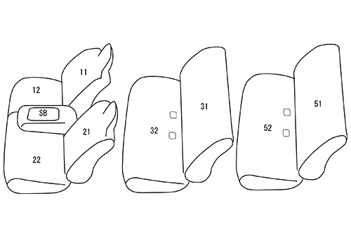 | 形 状 | 1列目:座面形状が4:6分割、ヘッドレスト一体型、センターシート有り 2列目:背もたれ座面一体型、ヘッドレスト無し、シートベルト有り 3列目:背もたれ座面一体型、ヘッドレスト無し、シートベルト有り ※9人乗り仕様の3列目に適合 |